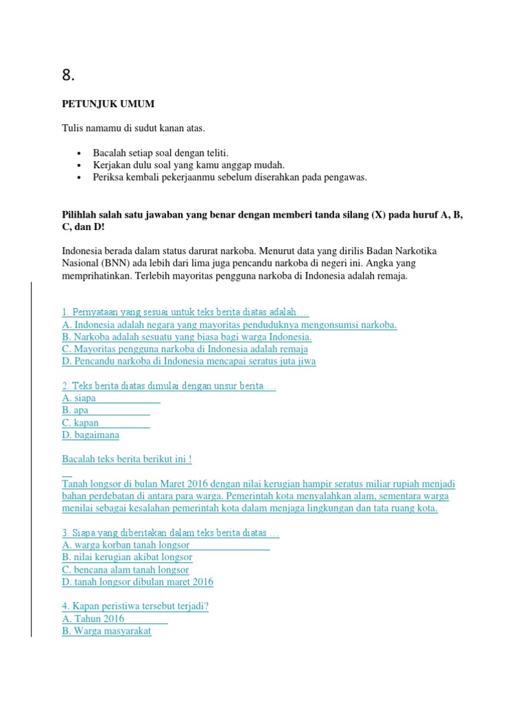 Unsur Yang Tidak Terdapat Dalam Teks Berita Di Atas Adalah A Siapab Mengapac Dimanad Bagaimanatlong Di Jawab from studyassistant-id.com Maybe you would like to learn more about one of these? We did not find results for: Check spelling or type a new query. Apa yang diberitakan dalam teks berita tersebut.
