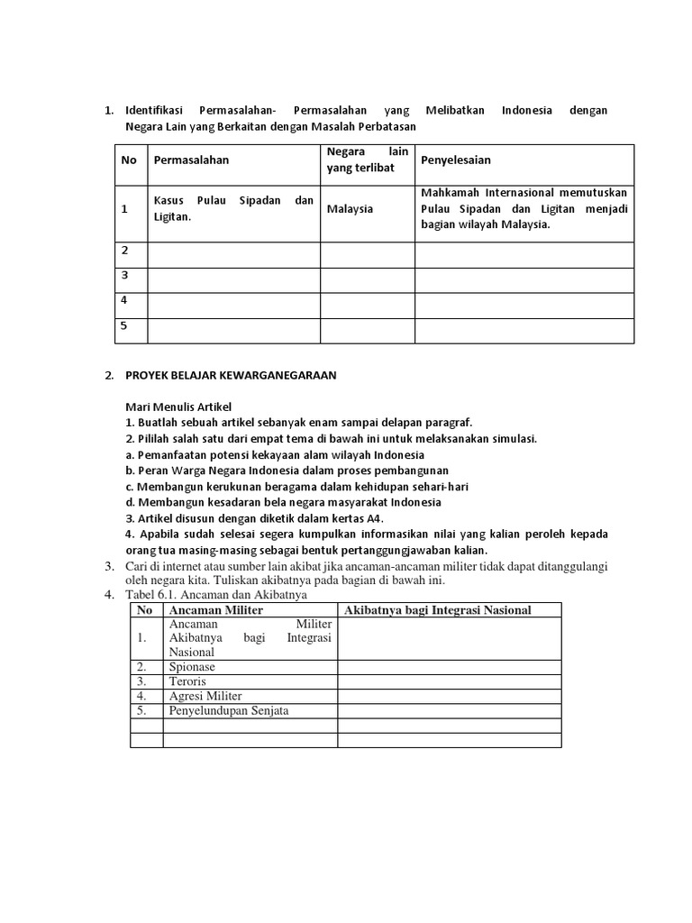 Tm Ancaman Terhadap Nkri Kelas 10 Semester Genap Pdf from imgv2-1-f.scribdassets.com Mengapa masih ada hal tentang perbatasan yang masih belum. Prespektif masa depan akan potensi sumber daya perikanan di indonesia adalah 6.1 juta ton pertahun dan dimanfaatkan sekitar. Dan istriku, arum wardhani, 26 tahun. Coba kalian lakukan pengamatan atas kekayaan alam yang terdapat di wilayah kabupaten/kota atau provinsi tempat kalian saat ini berada. Distribusi penduduk adalah distribusi yang dapat memenuhi persyaratan kesejahteraan dan keamanan, yaitu penyebaran penduduk yang merata. Mengidentifikasi ancaman di bidang upaya bersama. Sistem akan mencocokan id dan nama yang diinput dan membandingkan antara nama yang diinput dengan nama yang ada dalam database kami, demikian bunyi ada hadiah uang elektronik senilai total rp 6.000.000 dan 1 unit smartphone. Biasanya sih tugas ini diberikan ke siswa ketika guru sedang kosong karena cukup sekian yang dapat kami sampaikan mengenai soal dan jawaban tabel 6.2 pkn kelas 7 semester 2.